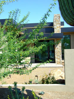 The existing home had a remodel that the previous owner started, but never finished. The new home used the existing "bones," and a new Desert Contemporary design was done to create this multi-award-winning home that has tripled in value since it was built.